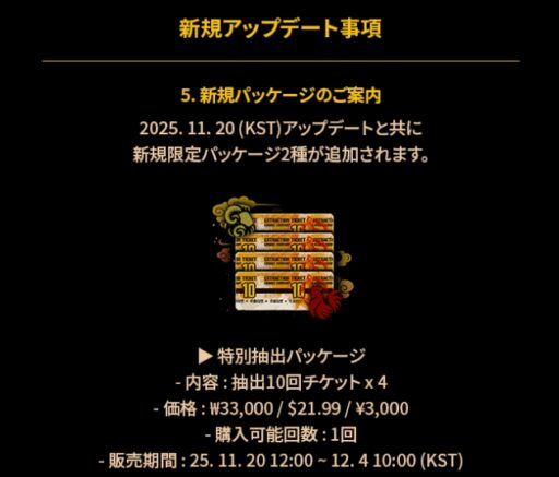 11/20(木)アップデートと共に、新規限定パッケージ2種(有償販売)が追加されます。