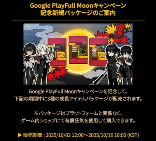 Google Play Full Moon キャンペーンを記念して、下記の期間中に3種の成長アイテムパッケージが販売されます。
