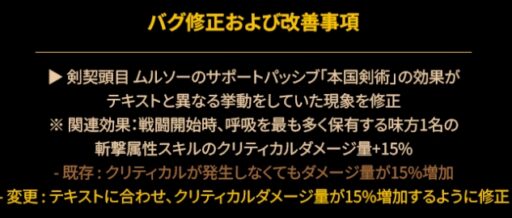 剣契頭目ムルソーのサポートパッシブ「本国剣術」の効果がテキストと異なる挙動をしていた現象を修正。