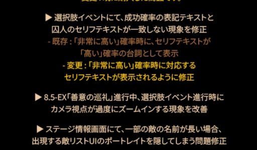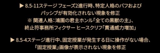 8.5-EX「善意の巡礼」関連ステージ進行中、聖徒の御手が出現するステージで特定状況において戦闘が終了しない現象を修正。