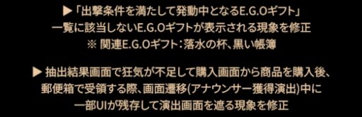 ▶「出撃条件を満たして発動中となるE.G.Oギフト」一覧に該当しないE.G.Oギフトが表示される現象を修正