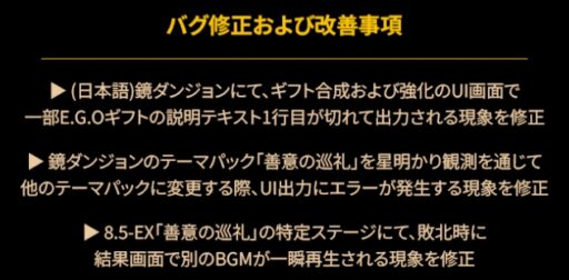 鏡ダンジョンのテーマパック「善意の巡礼」を星明かり観測を通じて他のテーマパックに変更する際、UI出力にエラーが発生する現象を修正。