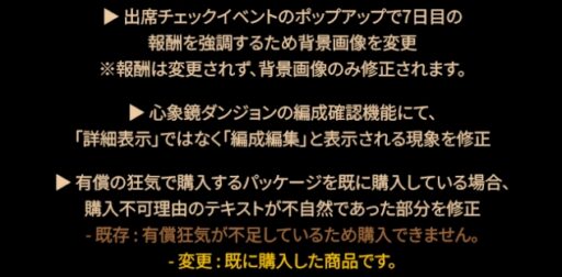 他はバグなど改善・修正などが主で、まことに穏やかな定期アプデとなります。